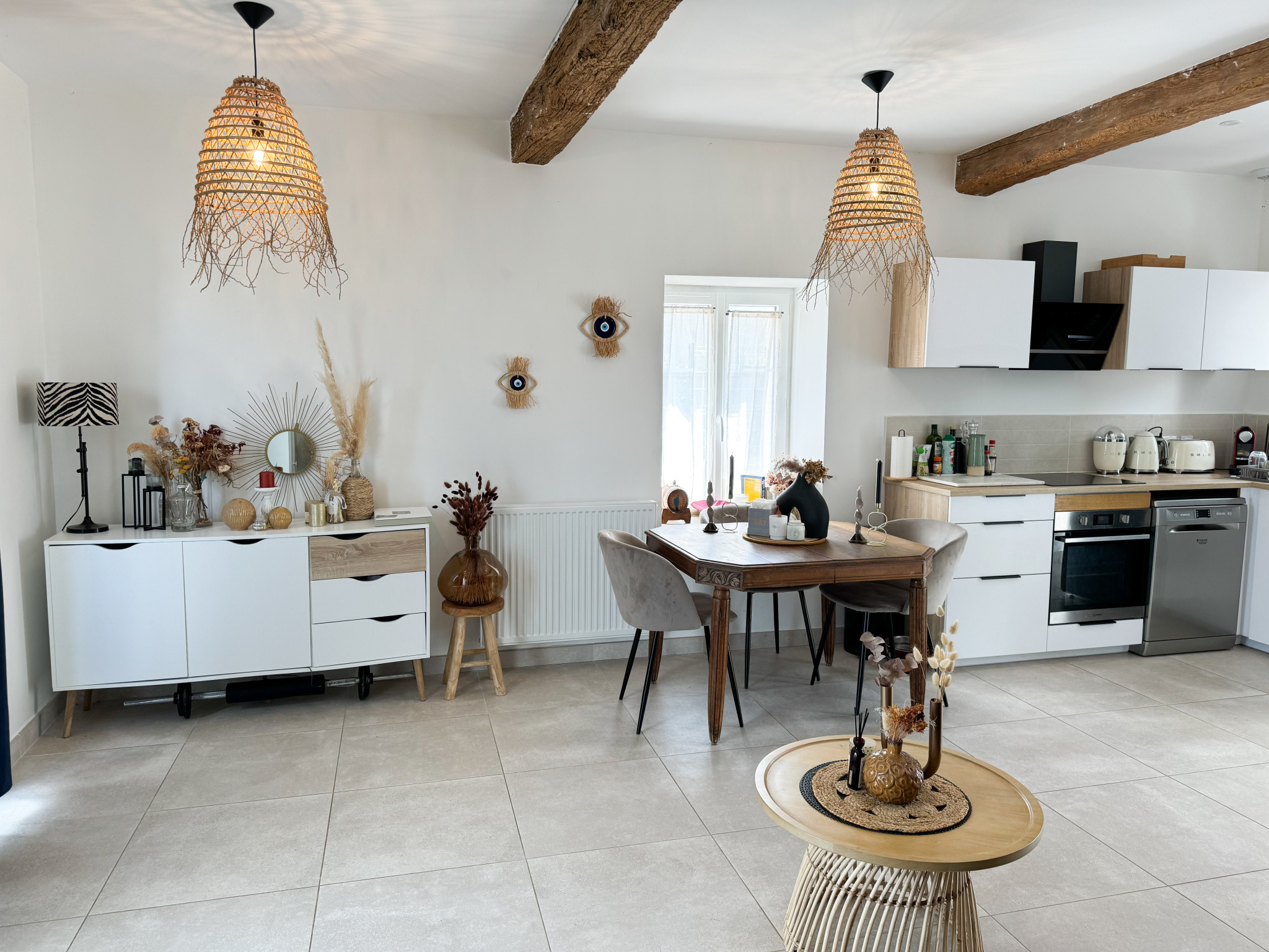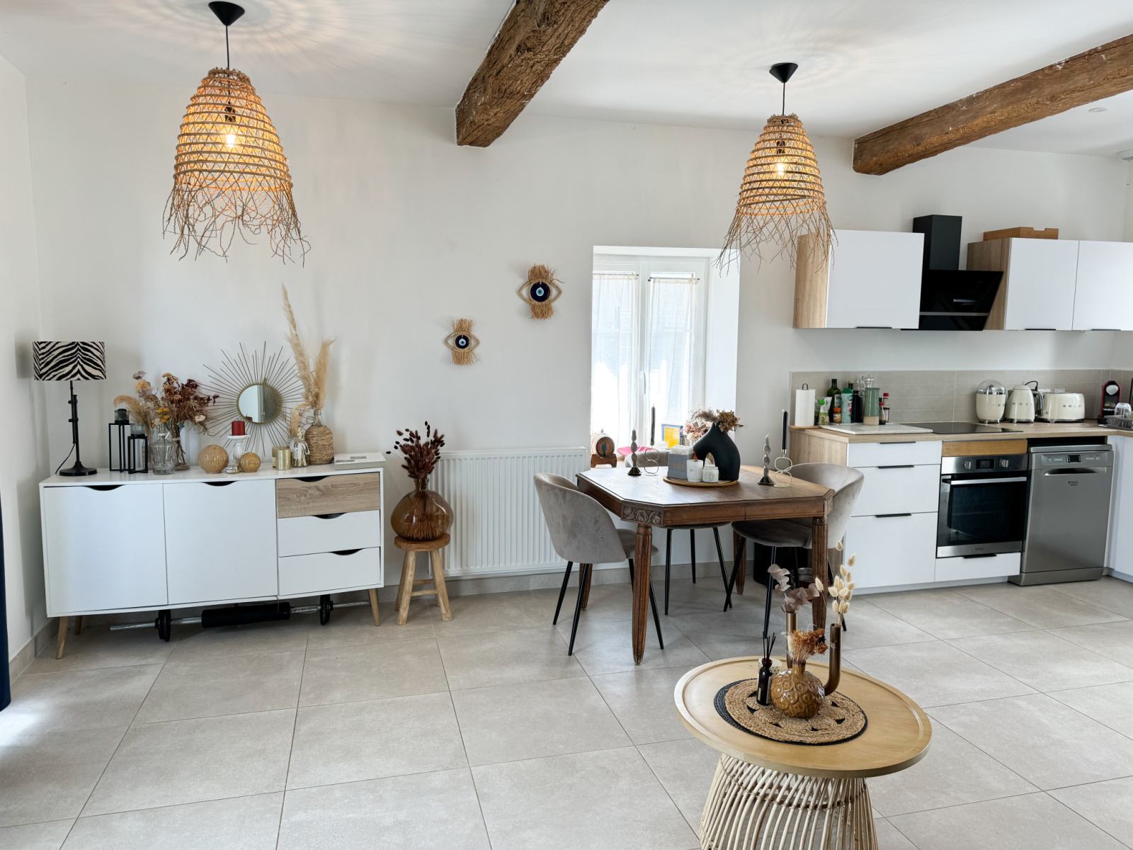 Dommartin (69380)L'agence IMMOBILIÈRE de SALVAGNY vous propose une maison T3 de 59,34 m2 (mitoyen sur un coté) dans une ancienne grange rénovée proche du centre du village de Dommartin (36 imp. des Muriers). Au rez-de-chaussée une charmante pièce de vie traversante avec cuisine aménagée (plaque à induction et hotte), une buanderie et un WC séparé. A l'étage 2 chambres de 10,80 m2 et 9,42 m2, équipées chacune de grands placards, une salle d'eau avec WC. Prestations récentes et de qualités. Deux terrasses avec accès au jardin. Chauffage individuel au gaz. Deux places de stationnements. Portail électrique. Chalet bois sur le terrain. DPE: C. Loyer charges comprises 1193 € dont 45€ de provision sur charges (entretien chaudière et espace vert). Dépôt de garantie 1193 € TTC. Honoraires charge locataire 777 € TTC dont 179 € pour l'état des lieux. Renseignements et visites au 09 83 557 559
