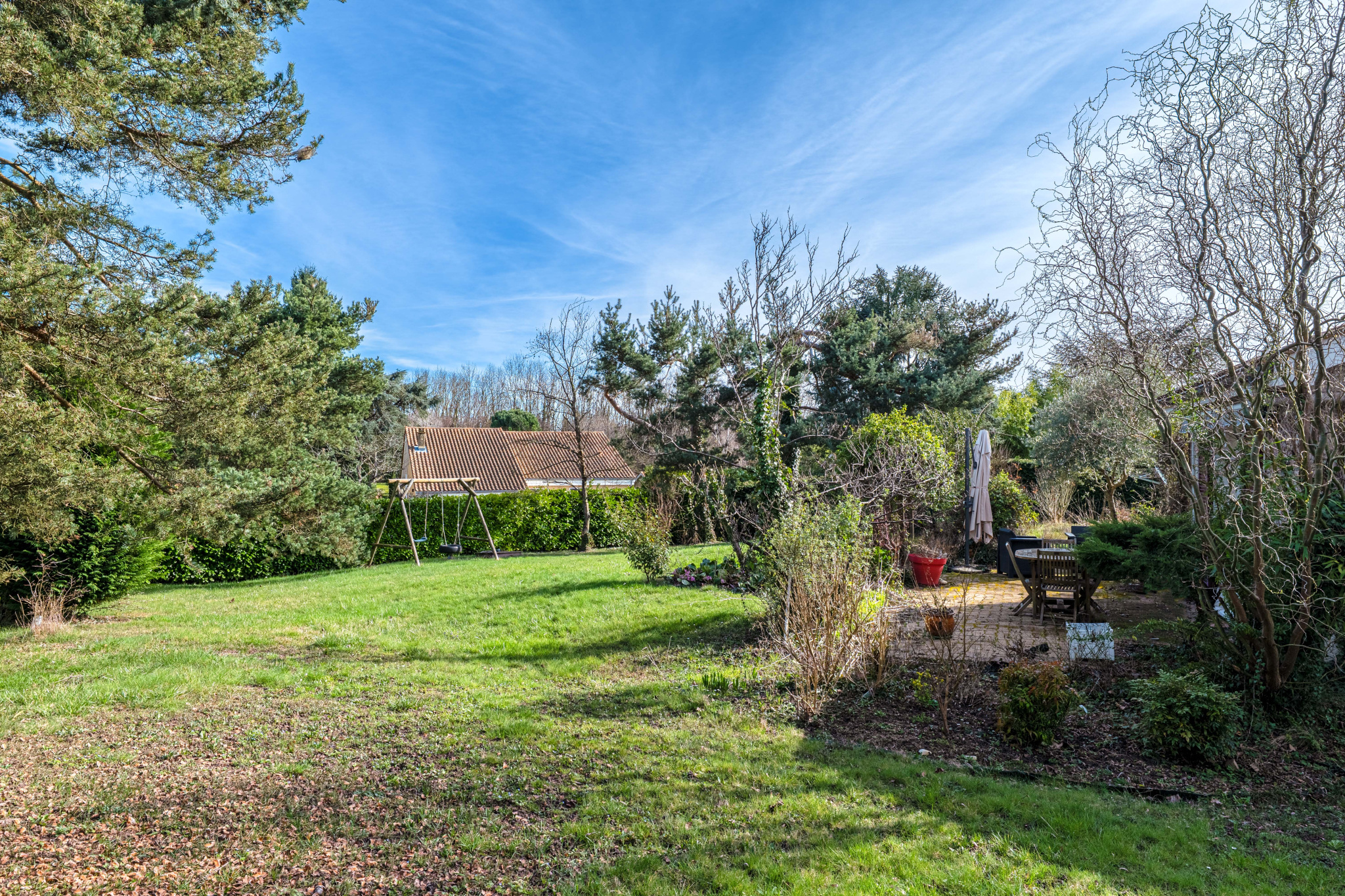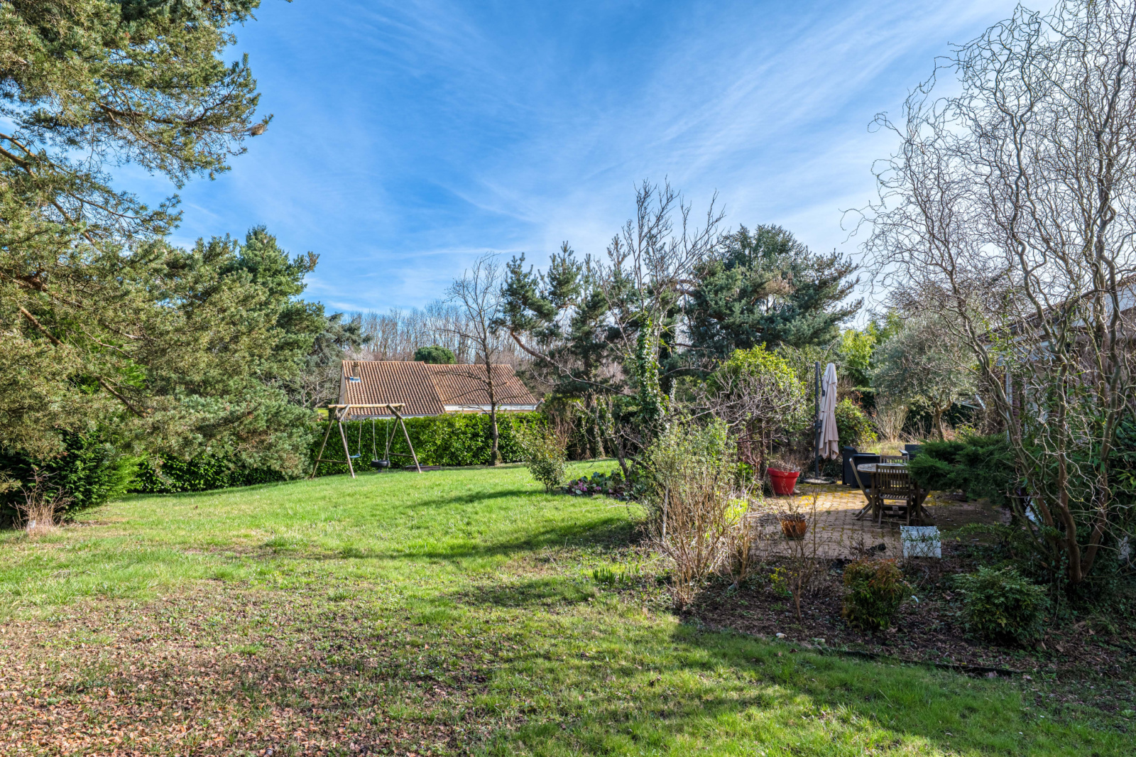 Implantée sur une parcelle d'environ 1 500 m² cloturée, arborée et piscinable.