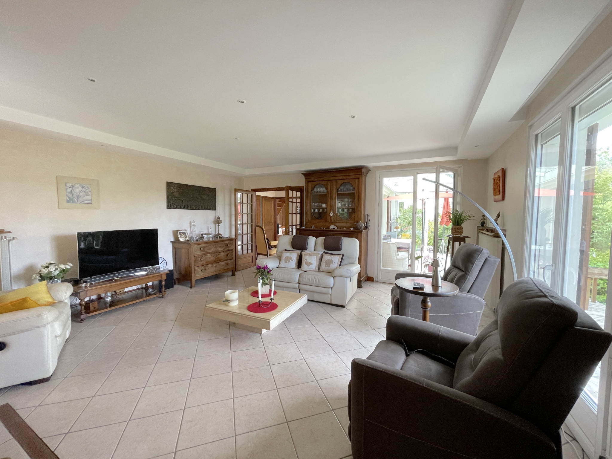Charbonnières-les-Bains (69260)Immobilière de Salvagny vous présente sur la commune de Charbonnières-les-Bains, une maison de type plain-pied d'environ 144 m² édifiée sur sous-sol (surface au sol : 259 m²). Superbe terrain arboré de 1157 m² avec piscine et vue dégagée. Emplacement calme et sans vis à vis. Elle se compose d'une vaste entrée, d'une cuisine dînatoire ouvrant sur une véranda, d'un beau séjour avec poêle à granules, de 3 chambres, de deux salle d'eau. Le sous-sol est semi-enterré et dispose d'une 4ème chambre avec salel d'eau, de nombreux rangements, d'un vaste garage et d'une pièce supplémentaire pouvant être aménagé en studio indépendant. Chauffage au gaz de ville. Climatisation dans le séjour. Très bon état général. Bus accessibles à pied. Renseignements et visites : contacter Sylvie Machado - Immobilière de Salvagny by Pierrefeu Immobilier.