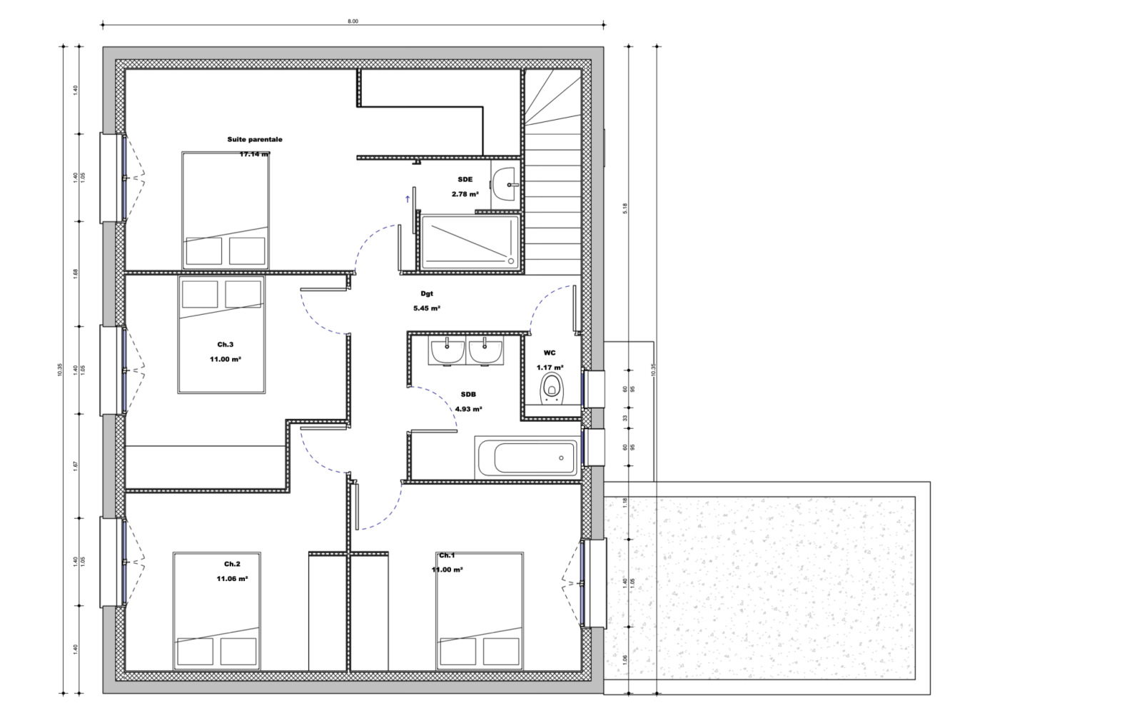 Dardilly (69570)Exclusivité IMMOBILIERE DE SALVAGNY - Opportunité... Permis de construire accepté et Libre de constructeur !!! Terrain plat situé sur la commune de Dardilly d'une surface de 1254 m2 (dont 1131m2 utiles) avec un CES de 8 % permettant la construction d'une maison d'environ 132 m2 habitables + garage. Maison disposant au RDC d'une piÚce de vie de 60 m2 orientée plein ouest, d'une buanderie, d'un WC séparé et d'un garage. A l'étage, une suite parentale avec salle d'eau et dressing, trois chambres enfants, une salle de bains, WC séparé. Viabilités en bordure. Bus TCL à proximité immédiate. AccÚs A89 et M6 à 5 minutes. Renseignements et visites : Sylvie MACHADO - ImmobiliÚre de Salvagny by Pierrefeu Immobilier