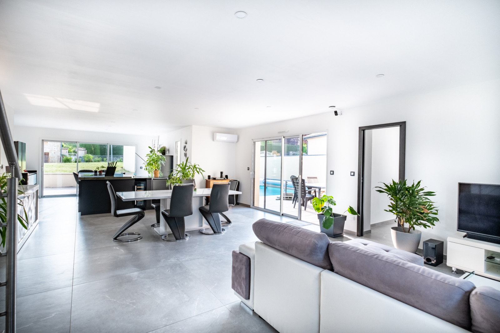 Morancé (69480)Immobilière de Salvagny vous présente, cette superbe maison contemporaine de 150 m2 construite en 2021 sur un terrain de 1007 m2. Vous serez séduits par ses prestations !!! Environnement calme et paisible. De plain-pied, une pièce à vivre lumineuse de 64 m2 ouvrant sur une terrasse de 78 m2, une cuisine type US entièrement équipée, une suite parentale de 30 m2 (dont une salle de bains avec baignoire, douche et WC et un dressing aménagé), un cellier / buanderie, un WC séparé. A l'étage, deux belles chambres avec placard mural et une superbe salle d'eau avec douche et WC. En complément : garage, abri voiture, une cave, parkings. En extérieur : une piscine au sel (6X3) avec volet motorisé, un pool-house pouvant être aménagé en chambre d'amis (ou bureau). Prestations de qualité : volets motorisés en Alu, systéme domotique pour pilotage des volets et des éclairages, chauffage par PAC, climatisation, adoucisseur d'eau, alarme,... Commerces à 2 mn en voiture. DPE : A - Pour plus de renseignements et visites : nous contacter.
